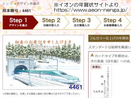イオンの年賀状印刷サービスで、私の描きおろしイラストによる年賀状をご注文頂けます。 絵柄は「北海道新幹線」「急行はまなす」「寝台特急カシオペア」の計3種類。料金、ご注文方法、受付期間等、詳細はイオンの年賀状サイトを御覧下さい。 >>イオンの年賀状サイト(トップページ)https://www.aeon-nenga.jp ※私の作品はカテゴリー「フルカラー仕上げ年賀状」に掲載されています。トップページ最上段の「見本番号から検索」欄に、下記の見本番号を入れて頂くと簡単にアクセスできます。▲見本番号:4461 「北海道新幹線」▲見本番号:4462 「急行はまなす」▲見本番号:4463 「寝台特急カシオペア」【札幌の水彩色鉛筆画家】 ~イラストレーター鈴木周作~公式サイトも併せて御覧下さい>>[PC|Mobile|北斗星乗車記|えちてつ絵日記]