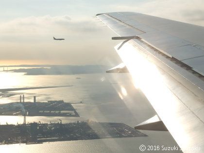電車の併走はよくありますが、飛行機の併走ってなんか得した気分です(笑)。 急遽決まった東京出張。 到着地の天候は曇り…と機内アナウンスが流れていましたが、着いてみると思いのほか良い天気でした。 飛行機が見えるいつものレストランで遅めのランチ。 ここに来るのは大抵夜なので、昼間の眺望はちょっと新鮮な気分です。 最近、モノレールに乗るのがだんだん楽しくなってきました。 とりわけ昭和島駅での通過列車待ち合わせ。 今回も浜松町に先に着ける空港快速ではなく、抜かれるほうの各駅停車を敢えて選んで乗ってしまいました。 こうして最後尾車両から眺めるポイント切り替えのレールの挙動、理屈では判っていてもやっぱり不思議な感じですね。 今夜の宿に向かう前に、せっかくなので今回も東川口の「グランシャリオ」さんへ…。 日の短い季節だけに、まだ17時前のカフェタイムなのに現役時代の「北斗星」のパブタイムみたいな雰囲気です。【札幌の水彩色鉛筆画家】 ~イラストレーター鈴木周作~公式サイトも併せて御覧下さい>>[PC|Mobile|北斗星乗車記|えちてつ絵日記]