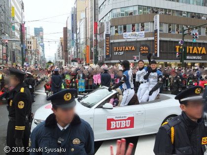 過去数回のパレードはなぜか絵画教室の日程と重なることが多くて、多分最初の2006年くらいしか生で観た記憶がありません。 今回もちょっと嫌な予感はしていたのですが、発表になった日程は幸いにも教室のない日曜日だったので、ならばと気合を入れて、少しでも良い場所を確保すべく早起きして出掛けてきました。 比較的暖かな日…とはいえ、雨の降る中、2時間以上も立ちっぱなしで身体はすっかり冷え切ってしまいましたが、それでも色々あったシーズンの最後の締めくくりとして、この場に立ち会えただけでも本当に良かったです。 あまりに寒かったので、遅めの朝食(?)は土鍋煮込み担々麺♪ やっと生き返りました…。【札幌の水彩色鉛筆画家】 ~イラストレーター鈴木周作~公式サイトも併せて御覧下さい>>[PC|Mobile|北斗星乗車記|えちてつ絵日記]