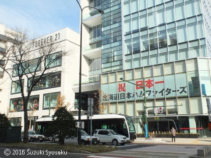 ファイターズ日本一の「証拠写真」を残しておかねばと、駅前通りの市電沿線をしばらく歩き回ってみました。 20日の優勝パレードに向けて、早くも横断幕や垂れ幕などを掲げているビルもありましたが、敵地・広島では走っていた優勝記念の「花電車」が札幌では出されなかったのはちょっと残念な気もします。 ともあれ、市電ループ化後初めての優勝風景、しっかり記録しておこうと思います。【札幌の水彩色鉛筆画家】 ~イラストレーター鈴木周作~公式サイトも併せて御覧下さい>>[PC|Mobile|北斗星乗車記|えちてつ絵日記]