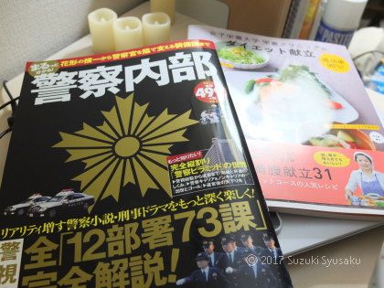 なぜか「警察24時」系のTV番組は欠かさず観ているウチのカミサン。 たまたまネットでこういう本の存在を知ったらしく、帰省先の八戸で「欲しい!欲しい!」と大騒ぎして市内の書店を何軒も回ったものの結局見つけられず、帰りに丘珠空港から札幌市内の大型書店に直行してようやく確保した一冊です。 ところが、もう10日も経つというのに「あの本、読んだのか?」と訊くと相変わらず「まだ…」との返答。 まぁ、参考書を買っただけで安心してしまう中学生みたいなものでしょうか?(笑) そういえば今日はネット通販で「ダイエット献立」なる本が届いていたようですが…。【札幌の水彩色鉛筆画家】 ~イラストレーター鈴木周作~http://suzuki-syusaku.com