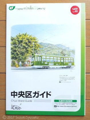 札幌市中央区役所が発行する「中央区ガイド」。 今年も表紙イラストを提供させて頂きました。 大判の区内全域地図をはじめ、区役所や各種公共施設の所在地・連絡先、防災情報などが掲載された、区の概要を知るには格好の資料です。 中央区役所等で無料頒布中。>>区役所Webサイトからダウンロードもできます。http://www.city.sapporo.jp/chuo/gaiyo/guide.html【札幌の水彩色鉛筆画家】 ~イラストレーター鈴木周作~http://suzuki-syusaku.com