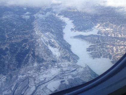 今回もまた「降雪により運航への影響が……」という怖いメールが前日から届いていて、ともかく飛んでくれるだけでも万々歳!……という状況でしたが、それでも夕張、シューパロ湖の上空だけはポッカリと雲が途切れて下界が見渡せたのは幸運でした。