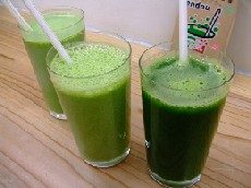 去年の寒い日、職場の廊下を歩いていると通りかかった営業レディから青汁のサービス券をいただいたので試飲しに行って来ました。朝からなんだか憂鬱な私・・・珍味、ダメなんですよねぇ。タダ券がなければ店内に足を踏み入れることはなかったでしょう。「青汁ストレート」「ヨーグルト」「アップル」「バナナミルク」の中から私は無難そうなアップルを選択ー。お味は・・・アップル風味で青汁の青臭さが消えているような・・・でも、やっぱり野菜っぽい苦味と口いっぱいに広がるケールの繊維がざらざらして吸い込む気力が全く湧いてきません。一口吸い込んだ後は、5ミリ以上、減らなかった私の青汁。優しい友達が一気飲みしてくれました!!ちなみに、どれかというと、ヨーグルトが一番飲みやすかったです。不思議と口の中のざらつきもアップルよりマシなような。バナナミルクは、さらっとしているけど牛乳と繊維があわないー。CMのように、不味い、の台詞の後「もう一杯!!!!!!」なんてとても思えない私でした。不味い、とは言いません。でも人生最初で最後の経験にしておこうと思います♪一番どす黒い色がアップルです。