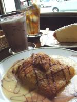 紙でくるまれたカジュアルなクレープじゃなくて、お皿に仰々しく盛られてさも高級なデザートであると主張する、そういうクレープを、たまには食べたい。徒歩圏内でいけそうなお店はシェルドフェリブル ぐらいしか・・・でも、今回は別のお店に行きたい。あっ、そういえば!かれこれ10年ぐらい前のいきつけカフェ 「GRAYS(グレイズ)」 にもあったような。ってことで久しぶりにいってきました。最近はとんとご無沙汰で久しぶりのお店でした。10年ぐらい前、今みたいにカフェが乱立してない時代はよく通ってました。今回は特にケーキを求めたわけじゃないのでクレープがなかったら入らんyo!と店に入る前に、クレープ健在だということを確認してから晴れて着席しましたしかしー!メニューを持ってくるときに「一人分しかできません」って!2人ともがクレープ食べたくて食べたくてたまらんかったら暴動もんだよねー。席に着く前に言ってよね!友人と交渉成立で私がクレープをいただくことにメニューを見ると10年前と同じメニューがありました!カスタードクリームとクッキーのクレープ。!!!!!!!クレープなんてどこで食べても同じ、なんていつかのブログで書いてしまったことを深くお詫びしますカフェでこんな美味しいクレープを食べたことがないっ 中身はたっぷりのカスタードクリーム。 でも、むつこくないんですー。甘さ控えめ♪ あまりに感動モノだったので、もう一枚オイシそうな生地、伝わるといいなぁ。 幼いころ、母が作ってくれたなつかしのクレープに似ています。すなわち、お菓子作りの本に載っているようなこれぞ、基本のクレープ!です。極薄生地にベージュのちりめん焦げ模様、ではなく厚めの生地でしたが。ちゃんとぷつぷつ穴が開いていてエアリー感はあります。厚めのクレープ生地だとねっちりべったりな質感のお店が多いんですけど、なんでこんなにふわっとしとるかね。クレープとしては厚めでも、もちろん薄いんですよ~。パンケーキの薄い版、ではありません。クレープだけ食べても絶対美味しいに違いない、極上生地!さらに、私が感激したのは、余計な装飾がなかったということ。やたらめったら生クリームだの、フルーツだのプラスアルファーでお得です、って過剰なサービス要りません♪直接ケーキへの生フルーツ装飾はいいけど、つけあわせで生フルーツは合わないと常々思ってる私です・・・これはたっぷりのカスタードクリーム、お店特製のサクサククッキーを砕いたものを極上クレープでふんわりと包み、その周囲にたっぷりのカスタードソース。クッキーもかたくなくてサクサクなのでクレープやカスタードクリームと一緒に口に入れてもぜんぜん歯ざわりの違いによる喧嘩がないんです☆これで420円って、奇跡のクレープ!さすがに大量のカスタードソースはすくいきれずに残しましたけどね、ホントーに美味しかったです。大満足。ケーキも美味しいですし。近々、また行きたいって思います。このクッキーカスタードクレープはホントにオススメ!!お近くの方、ぜひ試してみて