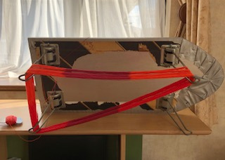 今回は「アイロン台」を使って、糸をカードに巻き取りました。