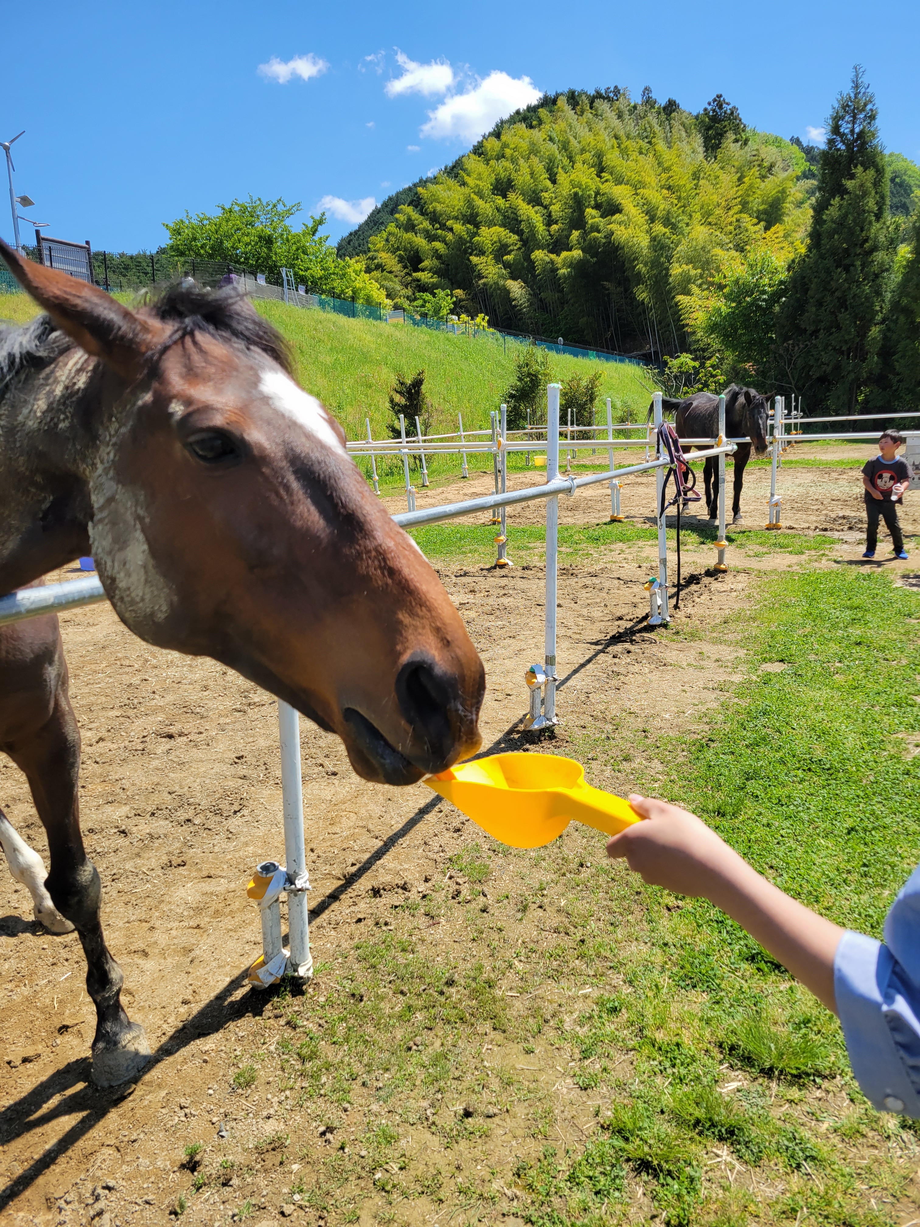馬もふれあえるだけでも6頭くらいいて、すごい迫力。