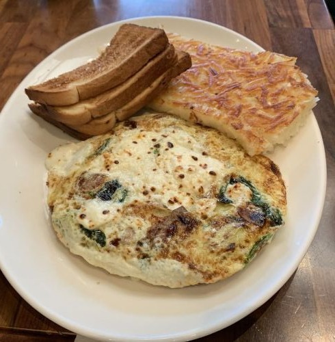 こちらは、フレンチトーストにキャラメリゼしたバナナをトッピングして、バナナフォスターをシロップかわりにかけて、その上にシナモンのクリームがのっています。
