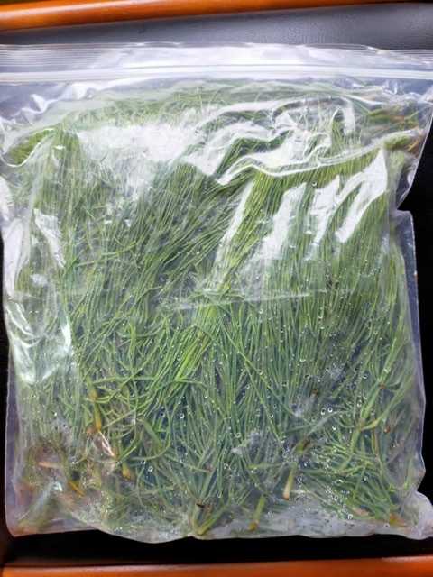 大量のスギナと菜の花の種、カラスノエンドウの種。