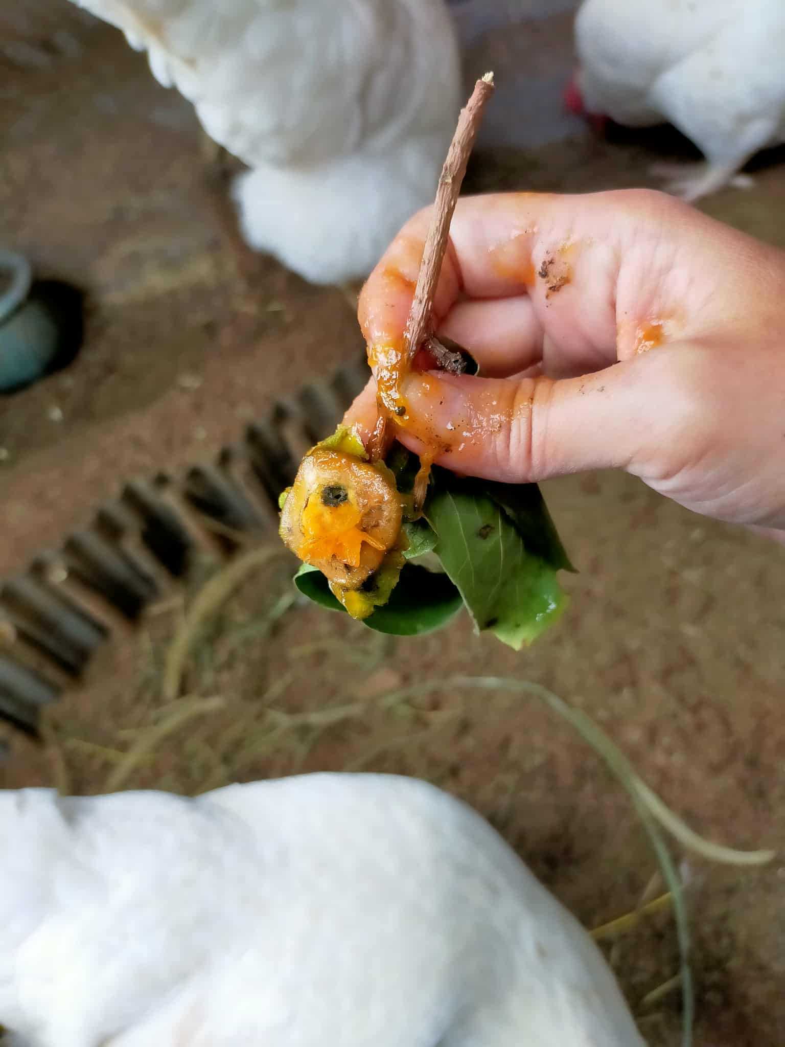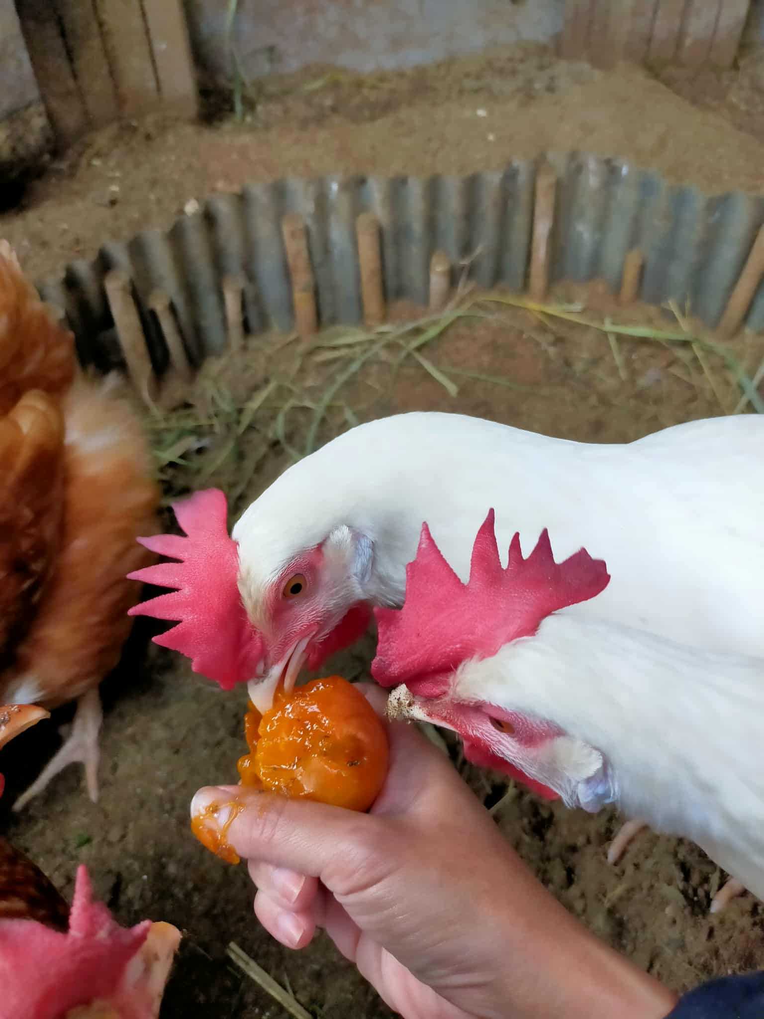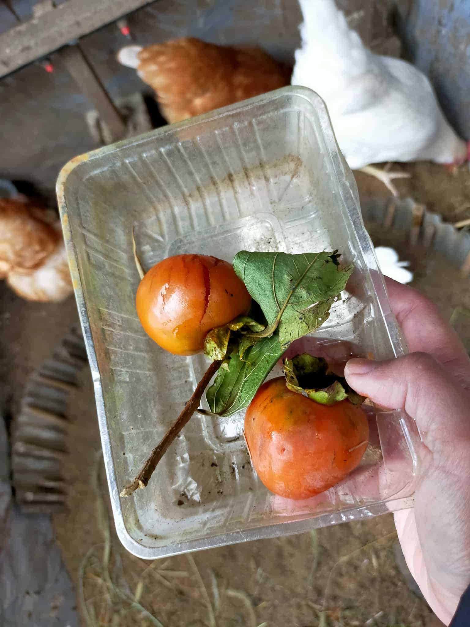 鶏小屋に柿を投げ込んだら、あのシーンみたいになるんだろうね。
