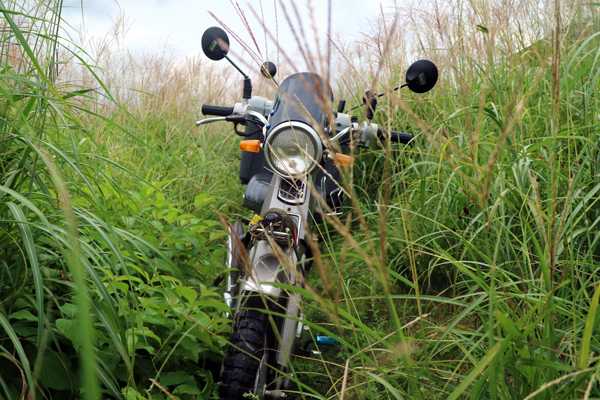 東屋へ茅を分け入り進むカブ