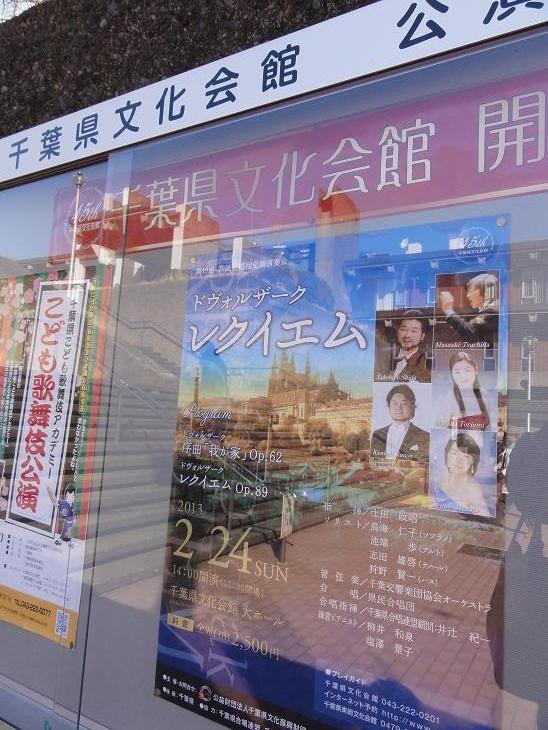 第19回県民合唱団定期演奏会ドヴォルザーク「レクイエム」2013年2月24日千葉県文化会館・大ホール指揮/土田政昭独唱 ソプラノ/鳥海仁子 アルト/池端歩 テノール/志田雄啓 バス/狩野賢一合唱/県民合唱団管弦楽/千葉交響楽団協会オーケストラ強風の日に関東を横断して千葉まで行ってまいりました。とても大きな立派なホールです。ドボルジャックのレクイエムはまったく聴いたことがなく、YouTubeでちょこっと聴いてみたらものすごそうだったのでこれはめったにない機会だと思いました。予想通りすごかったです!!!アマチュアの合唱団なのに驚きでした。すばらしかったです。こんなにすごい曲があるだなんて、もっときちんと予習しておいて聴くべきでした。それがとても残念です。でも歌詞対訳がついていたので構成も詳しく記入されていて、非常に助けになりました。お気に入りのバス歌手の狩野賢一さんの歌うパートが多くてうれしかったです。事前に聴いていたローベルト・ホルの声とまったく真逆の声です。すごく美しく清澄です。低い声も高い声も美しくまさにレクイエムのバスとしてはぴったりでした。ソプラノとアルトもすばらしくて良かったです!指揮者の方も大熱演でした。お疲れさまでした。狩野さんの宗教曲はもしかしてオケ付きで聴くのは初めてですかね!?やはり良かったです!!!歌い出すとはっとさせる空気が変わる声…です。すごく宗教曲にあっています!ギャウロフが歌ったように、ヴェルディのレクイエムなんかも聴いてみたいです。アイーダのバス歌手が歌う王様役とか聴いてみたいです。ザラストロもまだ聴いていないです。ザラストロははまり過ぎな感じがします。最終的にはボリス・ゴドゥノフでしょうか海外に行かなくてもこんないいバス歌手がいるなんて!いろいろ楽しみが増えました(もしかして老後まで楽しめるかも?…