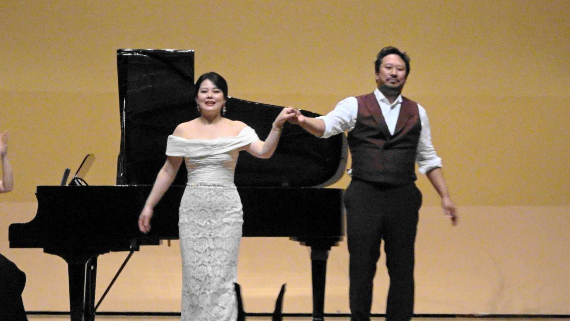Photo: ©Shevaibra, courtesy of Hibikinomori Opera Company and the artistsOpera Gala Concert Puccini 愛の歌 名場面集2025年6月15日(日)開場 12:30 / 開演 13:00桶川市民会館 埼玉県桶川市若宮1-5-9大石 洋史神田 さやか田崎 美香榛葉 樹人友清 大樹上本 訓久西島定一《トゥーランドット》ティムール 下瀬太郎ピン 内田雅人パン 塚田堂琉ポン 山原卓実《ラ・ボエーム》マルチェッロ 栗原 剛ショナール 内田雅人コッリーネ 下瀬太郎税官吏 古川和彦軍曹 栗原 剛《トスカ》スポレッタ 黒田大介響の森オペラ合唱団 賛助出演:黒田大介 新後閑大介 塚田堂琉 山原卓実 内田雅人 栗原剛 下瀬太郎 古川和彦指揮・ピアノ:仲田淳也(Petits Copains)ピアノ:渡辺郁子佐藤元子(司会)主催 NPO法人響の森オペラ***桶川オペラガラコンサートプッチーニの名作オペラ4作品から抜粋してシーン丸々上演するという贅沢ガラ。堪能しました♪桶川のこの団体の公演を拝見するのは数年ぶり前回は上本・今井コンビのカヴァレリア・ルスティカーナでした。今回もプッチーニ4本立てとは超強烈!人気者テノールの榛葉さんがトップでボエームの1幕を華麗に披露し上本さんがカラフで最後締め、フィナーレの大合唱に続くという粋なアレンジ。上本さんは日本に数人しかいない超強烈スピント=ヘルデンテノールで圧倒しました。ソプラノ神田さやかさんがすばらしかったです。リリックソプラノでそれぞれの役にあった熱唱が光りました。同じくソプラノの田崎美香さんもリリックな美声を披露して魅了しました。バリトン大石さんはパワフルなリリック・バリトンで美しくかつ強靭ですばらしかったです。この団体はいつも男声合唱のトラが新国立劇場合唱団で、強力な助っ人ですごすぎでした。ピアノと指揮で音楽を牽引したプティコパンの仲田さんがオーラ放ってました。司会の佐藤さんお疲れ様でした。***Puccini "La Bohéme"「ラ・ボエーム」より第1幕 出会い~アリア~二重唱 Non sono in vena ----ミミ:田崎美香ロドルフォ:榛葉樹人マルチェッロ 栗原 剛ショナール 内田雅人コッリーネ 下瀬太郎 ロドルフォとミミの出会いから第1幕の幕切れまでの全て 「冷たき手を」「私の名はミミ」「麗しき乙女よ」 最後は二人ともHigh C! 田崎美香さんはリリコの美声、榛葉さんはリリコ/リリコ・スピント そでで歌う、マルチェッロ 栗原 剛、ショナール 内田雅人、コッリーネ 下瀬太郎もパワフルですばらしい! 演奏後、榛葉さんインタビュー》(以下はメモをもとに概要を記述)「(ボエームのロドルフォは)芸術家の彼らに共感しながら歌わせていただいている。僕はデビュー時はバリトンだったのでマルチェッロ役だった」Q「恋への憧れはどうですか?」榛葉「僕は奥手で、高校まで彼女がいなかった」第3幕 全曲 La barriera d'Enferミミ:田崎美香ムゼッタ:神田さやかロドルフォ:西島定一マルチェッロ:大石 洋史税官吏 古川和彦軍曹 栗原 剛合唱 ムゼッタ:神田さやかさんは華やかでコケティッシュな魅力がある。ムゼッタになりきっている。マルチェッロ:大石 洋史さん、すばらしいリリック・バリトン。休憩Madama Butterfly「蝶々夫人」から第1幕 愛の二重唱 Viene la sera蝶々さん:神田さやかピンカートン:上本 訓久 蝶々さん:神田さやかさんは、可憐で純粋な蝶々さん。リリコ。先ほどのムゼッタと同じ人がやってるとは思えないほど変身している。ピンカートン:上本 訓久さんは度肝を抜くぶ厚い声ですごい声量。まさにスピントでヘルデンテノールのレベルのパワーを見せつける。 歌い終わって、ふつうは寝所にピンカートンが蝶々さんを誘い捌けるのだが二人は手を握り見つめ合ったまま暗転。 演奏後、上本 訓久さんインタビュー 佐藤さん「こんなギラギラしたピンカートンは上本クンならではと、楽しませていただきました。」 上本 訓久「はい!」…「はい!」(ハイしか言わない上本さん) 上本 訓久「鍛えてます!筋トレしてます!」♪ある晴れた日に Un bel dì蝶々さん:神田さやか romba il suo saluto romba で仲田淳也さんのピアノが轟く礼砲を鳴らす 神田さやかさん、l'aspetto の高音も長く伸ばす! 演奏後、神田さやかさんインタビュー。 佐藤「悩みはないですか?」 神田「メンタルが弱いので、落ち込んだ時は、お守りを部屋にぶら下げています。」 (今後の予定は?)神田「7月27日に、テノールの新後閑大介さんのリサイタルに出ます。インスタもやっています!」♪さらば愛の家よ Addio fiorito asil ピンカートン:友清 大樹 リリックテノールの美声を聴かせる。「トスカ」より テ・デウムTre sbirri, una carrozza...Va Tosca (Te Deum)スカルピア:大石 洋史スポレッタ 黒田大介 豪華にオルガン、合唱付き! スカルピア:大石 洋史さん、すばらしい!パワフルで美声! 演奏後、大石 洋史さんインタビュー 佐藤「今回響きの森は初参加ですね?」 大石 洋史「桶川でのイベントは初めてです。このホールも。」 佐藤「とても響きがいいホールと言われているが?」 大石「気持ちよく歌えた。オルガン付きで合唱も強力で、いい思いをさせてもらった。