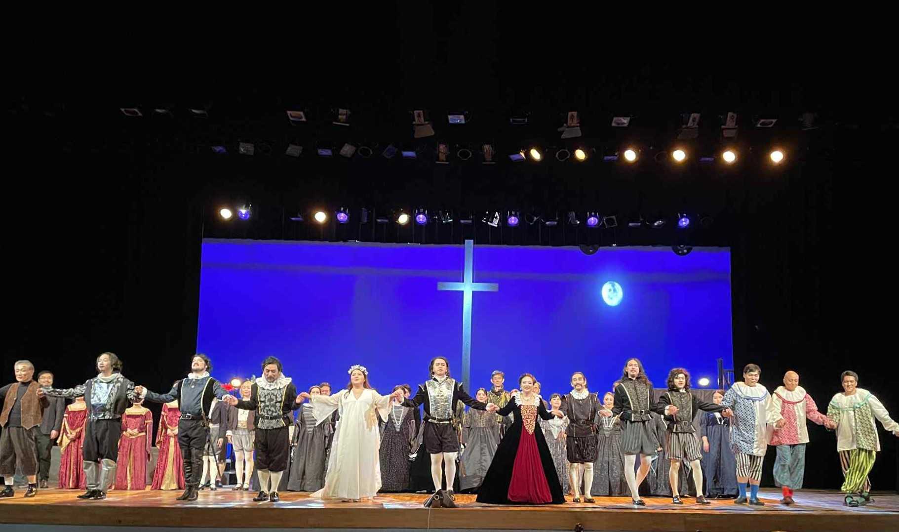 ※主催者様に直接確認したところ、カーテンコールは投稿してもOkだそうです。Photo AlbumPhoto: ©Shevaibra, courtesy of Opera Buff and the artistsオペラバフ トマ作曲「アムレ」(ハムレット)フランス語 字幕付きDAY22025年8月17日(日)14時開演サンパール荒川大ホール尾城正代(演出) 松村優吾(指揮) オペラバフオーケストラコンサートマスター:平澤仁オペラバフ合唱団17日 キャストハムレット:高田智士 オフィーリア:福士紗希クローディアス:清水良一 ガートルード:星野由香利レアティーズ:青柳素晴 マーセラス:磯崎康陽ホレイショ:内貴龍聖亡霊:平賀僚太ポローニアス:藤岡弦太墓堀人1:東浩市墓堀人2:佐藤圭道化役者:みよしよしお道化役者:河内コージ道化役者:藤田龍太他***今日のハムレット正直最高に素晴らしかった!昨日はほぼ若手のキャストで固めたキャスティングだったが本日は今旬の歌手、ベテランの歌手が勢揃い安心して見ていられる安定感!やはりハムレットは特に!題名役が大事。髙田智士さん全編歌いっぱなしの過酷な役ながら素晴らしい神がかり的大熱演。お声がしまいにはSimon Keenlysideにそっくりに聴こえてくるほど。カヴァリエバリトンの美声演技もすごい!この機会を与えてくれた神に感謝!すばらしい音楽すばらしい演奏でこの作品の素晴らしさを再発見。松村さん 平澤さん さすがでした。清水さんがクローディアスなんとすばらしい👍清水さんはバリトンだが、クローディアスはバスの役終演後にお弟子さんに「先生 あんな低い声出るんですね」と言われ、出るんですね。あーとお茶目に応えてて面白過ぎました笑😆ドラマチック・バリトンとは言え、 クローディアスはバスの役なのでバリトンにはテッシトゥーラが低いのだが、さすがの演唱!悪役を貫く演技とあいまった演唱で見事。祈りの場面のアリアがものすごかった!!脱帽!オフィーリアの福士さんも見事!狂乱のアリア À vos jeux, mes amis ではHigh F →High E???High D 二回 →??? 出したと思います。→追記:恐縮ですが、À vos jeux, mes amis に関してはこちらを参照ください。ガートルードは役にピッタリのドラマチック・メゾ演技も素晴らしかったです。そして!レアティーズの青柳さん最高にすばらしい👍いつまでも聴いていたいリリコ・スピントの美声!ポローニアス藤岡弦太さんもすばらしい美声バリトン!***Hamlet: five acts opera of 1868 by Ambroise Thomas, libretto by Michel Carré and Jules Barbierbased on a French adaptation by Alexandre Dumas, père, and Paul Meuriceof William Shakespeare's playHamlet, baritone Fach: Lyric Baritone (aka Kavalierbariton)Gertrude, mezzo-soprano Claudius, bassOphélie, soprano Fach: Lyric coloratura sopranoLaërte, tenor Marcellus,tenor Horatio, bass Ghost of the late King Hamlet bass Polonius bass First gravedigger baritone Second gravedigger tenor Chorus: lords, ladies, soldiers, servants, players, Danish peasants第1幕序曲 ホルン独奏廷臣たちの合唱。衣装が凝っていて、きちんと侍女、小姓、貴族、廷臣 と分かれたゴージャスな衣装。新しい結婚を祝うガートルードとクローディアスクローディアス:そなたは我が兄の妃だった。そなたに再び戴冠しよう デンマーク人の総意に従ってな。 私の悲嘆は国民の意思には逆らえない 厳かに権力を得るのだ かつて兄の妃だったそなたがわしの妃になるのじゃ国王陛下万歳 女王陛下万歳!戴冠の様子をステージしもてに現れ、じっと見ているハムレット。やっていられないというように激昂しその場を去る。ガートルード:息子がいないわ!クローディアス:黙っていろ!女王として振舞うのだ廷臣:我らはこの結婚を祝う祭りの日、喜びのだ。この歌が天上まで届きますよう。ポローニアスとオフィーリア。今回ポローニアスが演出的Keyだったようである。ポローニアスがオペラに置いて歌うシーンはほとんどないのに、この演出ではわりとよくステージに登場して彼の企みを彷彿とさせる。ポローニアスは娘のオフィーリアを精神的に支配していて、ハムレット王子を籠絡するように厳しく言いつけている。歩くハムレット。 哀しみというより荒々しい憤懣に満ちているハムレット:悲しんでも空しい優しさもはかなく消えうせる父は運命の妬ましき鉄槌に打たれて亡くなったそれから2か月も経ってないのに母は違う男の腕に抱かれているハムレット:未来永劫の涙はどこへ?ほんの数日ですべてが変わってしまった女ってやつは!そなたの名は移り気、意志薄弱オフィーリア登場オフィーリア:殿下!ハムレット:オフィーリア。身を背けるハムレットオフィーリア:あなたさまの魂は永遠の苦しみに悩んでいらっしゃるのね。わたくしたちの幸せまで壊れているわ噂ではあなたは国王のもとを離れるって。宮廷から去るつもりだって。ハムレット:オフェーリア…オフェーリア:どうして私を見てくださらないの?あなたは暗い絶望に囚われて心がここにあらずだわ。私のことはもうお忘れになったのかもしれないわねハムレットの愛を疑うハムレット:違うよ!神もご存じだ。僕は愛を忘れたりしないよ。女とは違うんだ。オフェーリア:ひどいわ!私