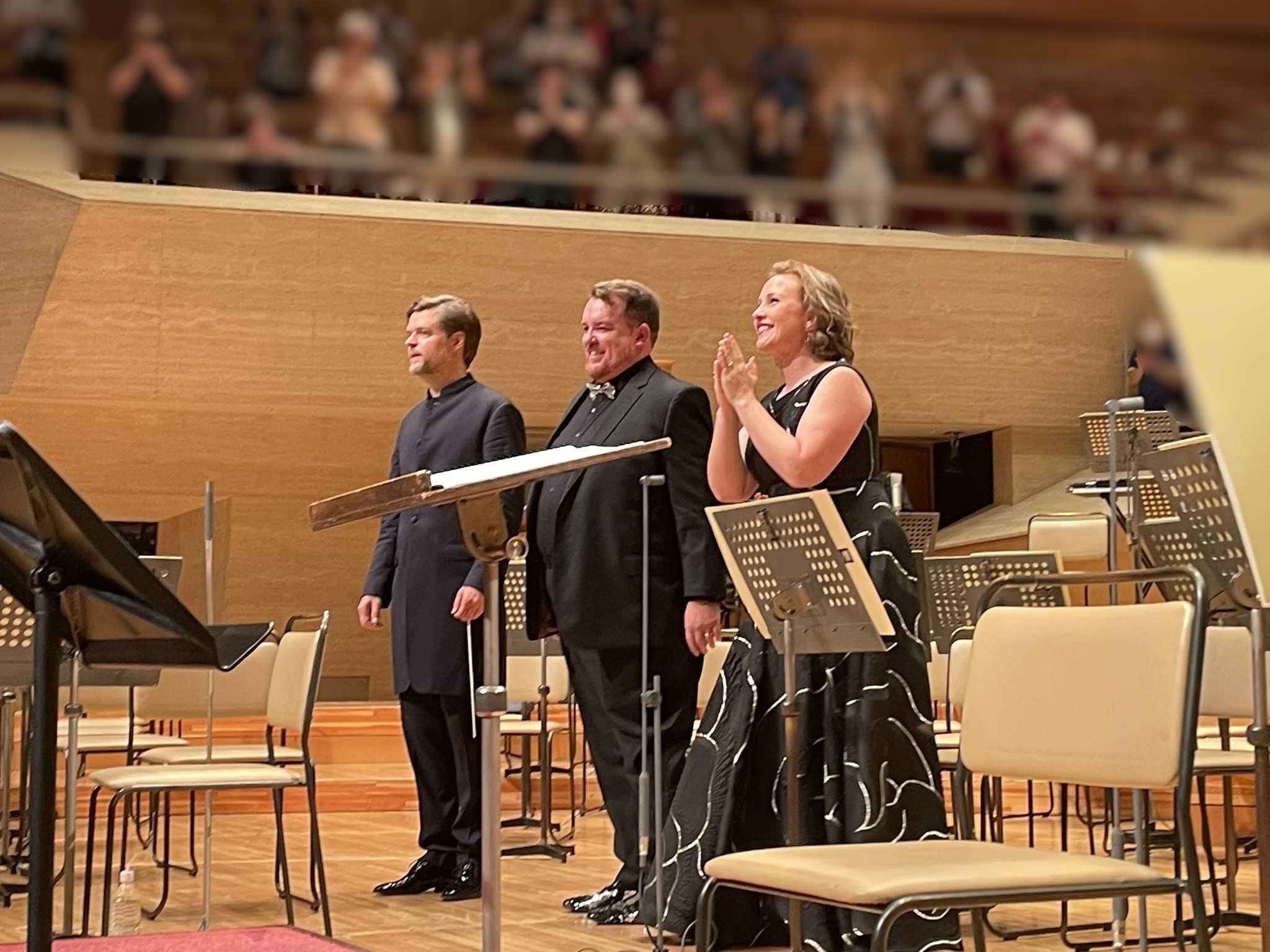 Photo: ©Shevaibra, courtesy of Yomiuri Nippon Symphony Orchestra and the artistsYomiuri Nippon Symphony Orchestra, TokyoConcertPopular Series No. 685Tuesday, 19 August 2025, 19:00Suntory HallConductor= JURAJ VALČUHAMezzo Soprano= SASHA COOKETenor= CLAY HILLEYWAGNER: "Tristan und Isolde" Prelude and LiebestodMAHLER: Das Lied von der Erde***読響 第685回名曲シリーズ大地の歌2025 8.19〈火〉 19:00 サントリーホール指揮=ユライ・ヴァルチュハメゾ・ソプラノ=サーシャ・クックテノール=クレイ・ヒリーワーグナー:楽劇「トリスタンとイゾルデ」から前奏曲と愛の死マーラー:大地の歌※当初の発表から、出演者が一部変更になりました。***ヘルデンのクレイ・ヒリーが降臨やんちゃなジークフリートみたいなユーゲントリッヒャー・ヘルデンテノール輝かしい声爆発的パワーまだ若い演技つけまくってて面白過ぎました。一方のメゾ サーシャクックはリリック・メゾで明るい声パワーはすばらしいが大地には合わないドラマチックメゾでないと。ドイツ語の発音が今一つ明瞭でなかった。サーシャ・クックは今回代役だった。日本で放送された「グレの歌」の山鳩だった?録音で聴くと深く感じたが、実際聞くと明るめに聴こえる。指揮者のヴァルチュハは若くてすばらしい才能!オケの演奏曲だけに集中できた前半のワーグナートリスタン船酔いしそうに揺れた最高でした。読響は大地はもう演奏しているしうまいもの。マーラーの天才的才能がこれでもかと散りばめられた名作***1Das Trinklied vom Jammer der Erdeテノール独唱オペラティックな歌唱で、芝居しまくり。手を挙げたり、目をこすったり 演技もして歌う歌唱はMAXIMUMなパワー大爆発で、僕はもっと出せるんだよ!と観客にアピールしているよう。さすがバイロイトのヘルデン!「影のない女」では「踊るヘルデン」!Dunkel ist das Leben, ist der Tod!Tod!で目を見開く2Der Einsame im Herbstアルト独唱3Von der Jugendテノール独唱4Von der Schönheitアルト独唱 途中、詩の内容に伴って、超高速演奏。5Der Trunkene im Frühlingテノール独唱 めっちゃすごい声。ヘルデンテノールのために書かれたとしか思えない、無茶な高音上げも超MAXパワー!もっと聴きたい!6Der Abschiedアルト独唱 途中のオケだけの演奏 チェロ コントラバス 低音が響く Ewig... ewig..***Related links 2022年01月28日 読響 大地の歌 歌詞