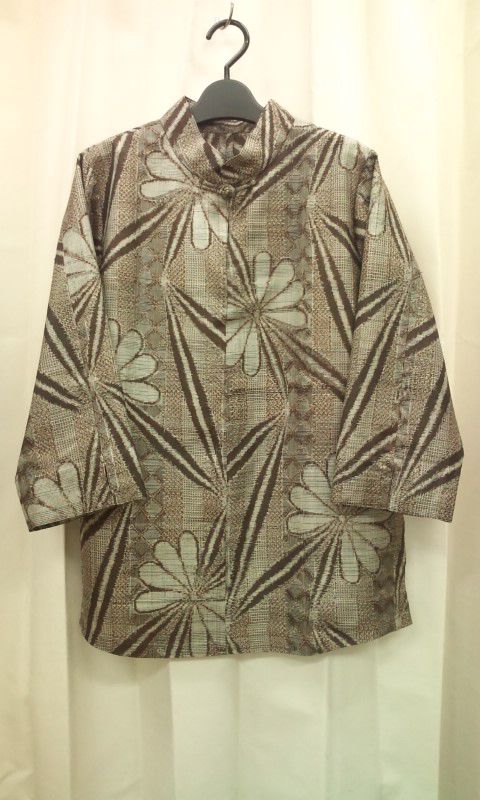 7月7日(土)・8日(日)デポー町田へ、きものリメイクの展示即売・受注会に伺います。立ち衿のロングブラウス、前回展示で新しいサンプルが売れてしまったので、別の生地で仕立てた物を持って行きます。柴色の細かい千鳥格子で、露草と金茶の流雲が織り出されています。薄くて軽い紬の着心地、ぜひご試着ください。※7日(土)は東村山店舗お休みですのでお気を付け下さいご予約・お問い合わせは042-306-2442までメールでもどうぞ