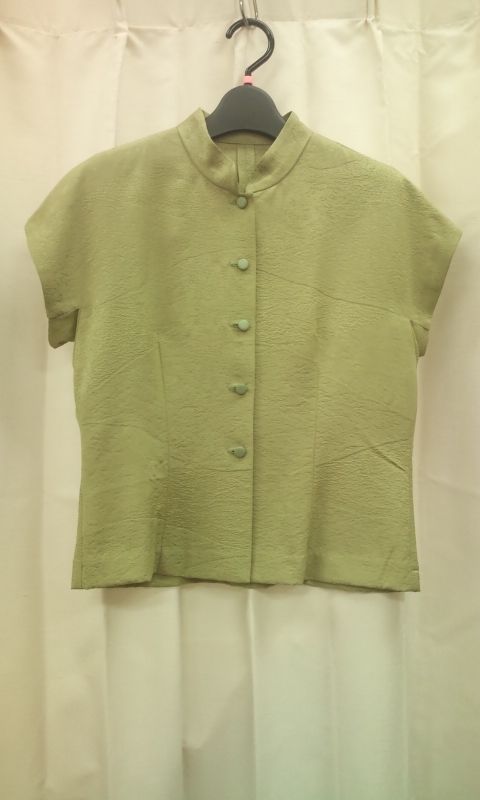 きものリメイクサンプルの展示即売・受注会が4日間あります。23日(土)・24日(日)はデポー国分寺29日(金)・30日(土)はデポー八王子みなみです。若草色の綸子一色で仕立てた、フレンチスリーブのチャイナブラウスです。腋下の立体接ぎによって、着やすい袖ぐり、すっきり見える短め丈です。すべて一点物です。**展示会当日は、東村山店舗はサンプル不在となります*6月19日(火)は店舗お休みしますのでお気を付け下さい。お問い合わせ、ご予約はお気軽にどうぞ。042-306-2442syjuntan@hb.tp1.jp