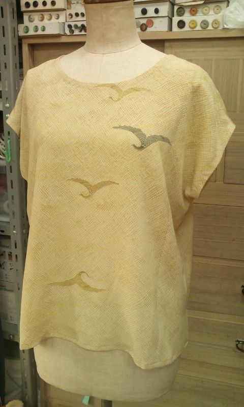 6月の展示・即売・受注会 22日(木)・23日(金)@デポーせたがや 30日(金)・7月1日(土)@デポー八王子みなみ今月も二カ所に伺います。 新作のサンプルはすぐに売れてしまう為、 お早めにどうぞ!人気のオーバーブラウスです。 涼しげなサマーウールひとえより。 グレーの葉柄に混ざって、 ほんのごく僅か、水色が効いています。*展示会開催日は、東村山店舗にサンプルがありません。 10日(土)は店舗お休みします。ご予約・お問い合わせは、042-306-2442またはメールでどうぞ。