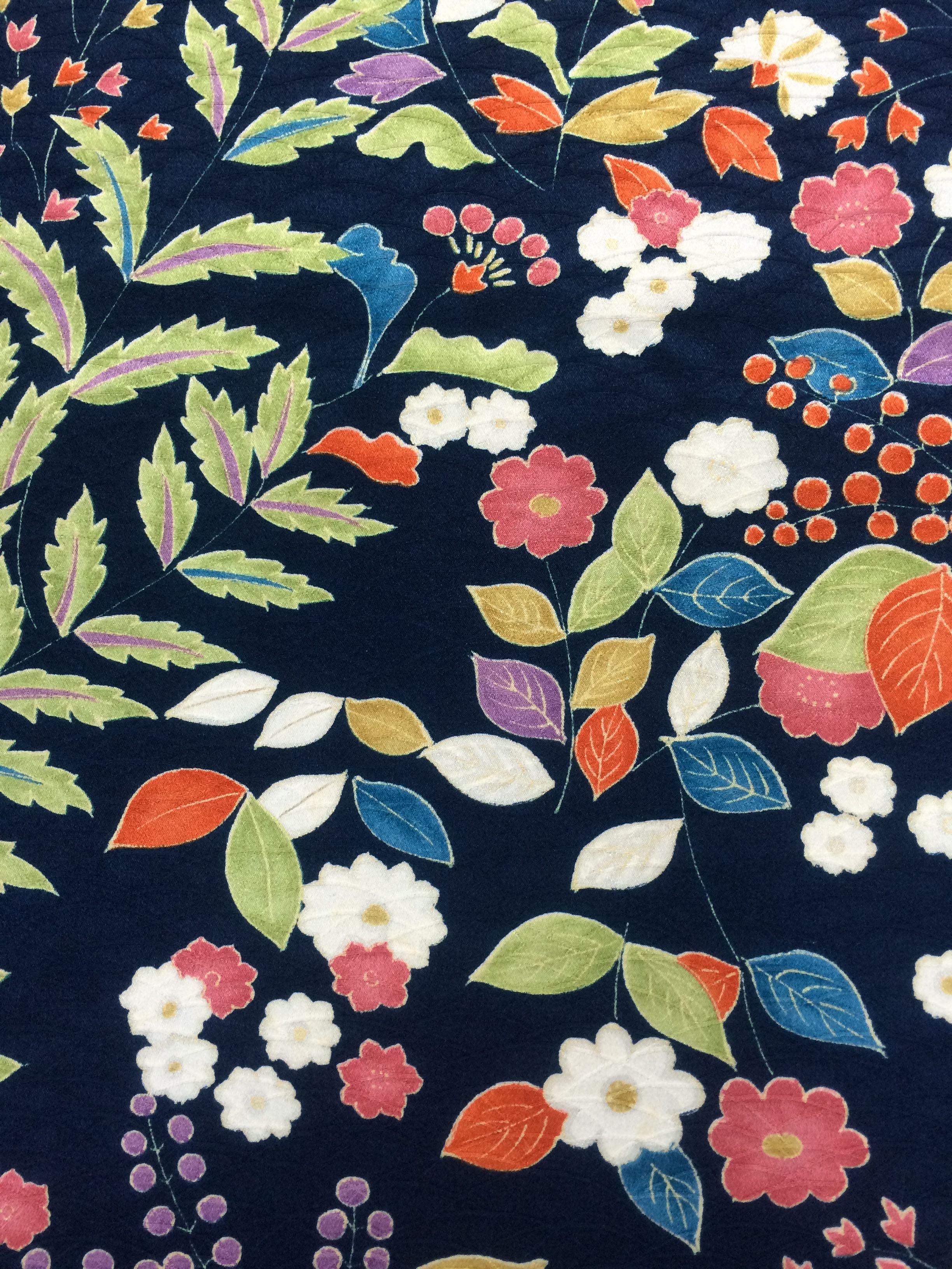 ご注文でお仕立てしたお客様の綸子地です。何て素敵な柄、そして色合わせ!織りで地紋が入っているうえに、ふっくらした質感と光沢、極細く白く染め残した輪郭線や、小さな実の可愛らしさ、葉脈に薄ふじと藍色がさしてある所、、、ずっと眺めても飽きませんね。21日(土)・24日(火)東村山店舗お休みします。ご面倒をおかけいたします。ご予約は042-306-2442syjuntan@hb.tp1.jpまで