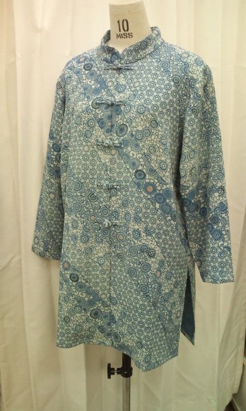 3月10日(土)・11日(日)デポー国分寺にて展示即売・受注会です。マオカラーのロングブラウスです。以前にアップした素敵な本藍型染めの鬼縮緬です。お気軽に、ご試着にいらして下さい。サンプルは一点物ですので、お早めにどうぞ。3月2日(金)・6日(火)東村山店舗お休みです。