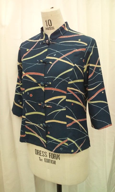 30日(金)・31日(土)デポー町田にてリメイク展示即売・受注会です。*出張仮縫い補正が入ってしまった為、30日・31日は町田のみでの受付、東村山店舗はお休みです。定番の七分袖チャイナブラウス。サッカー地のような綸子の凹凸が素敵な緑藍色です。渋い地色と反対にポップでカラフルな色使いとモダンな笹の葉&露の絵柄。生地の状態が良く、オススメの一点ものです。ご試着はお早めに。23日(金)東村山店舗お休みします。年度末&春でお直しが混み合っております。ご予約は042-306-2442syjuntan@hb.tp1.jpまで