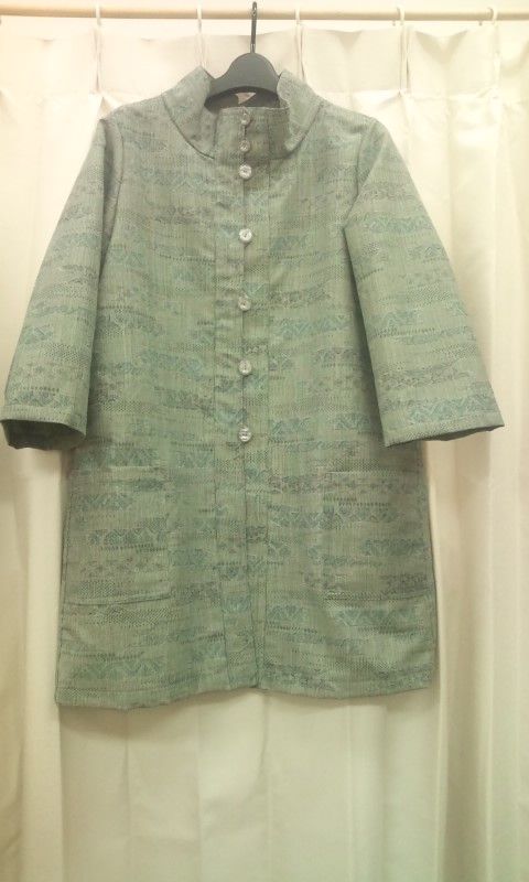 29日(金)・30日(土)デポーせたがやに展示に行きます。立ち衿のロングブラウス、ブログ掲載用に撮影しましたが、石神井で売れてしまいました。大きな麻の葉柄の紬です。サンプルは一点物です、お気軽にご試着においで下さい。東村山店舗は30日(土)お休みです。29日(金)は来店可能ですが、サンプルはありませんのでご了承ください。ご予約は042-306-2442メールsyjuntan@hb.tp1.jpまでどうぞ。