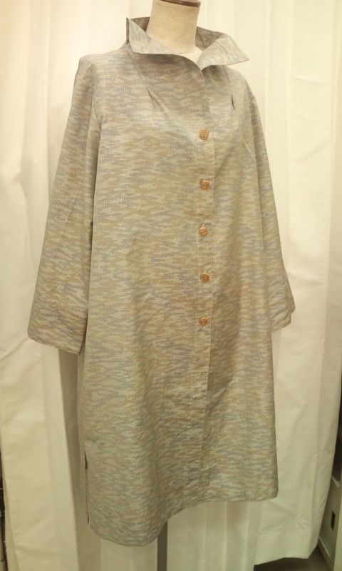 26日(金)デポー国分寺にて展示即売・受注会です。 *日程が一日のみなのでお気を付け下さい画像は久しぶりにサンプルを作ったパターン、 立ち衿のロングブラウスです。 サラッとした張りのある紬で軽やか、色んな季節に活躍します。 落ち着いた色味ですが、濃鼠、薄鼠、薄藤、茶、白と たくさんの色が入っていて立体感があります。 もちろん一点物。お早めにどうぞ。