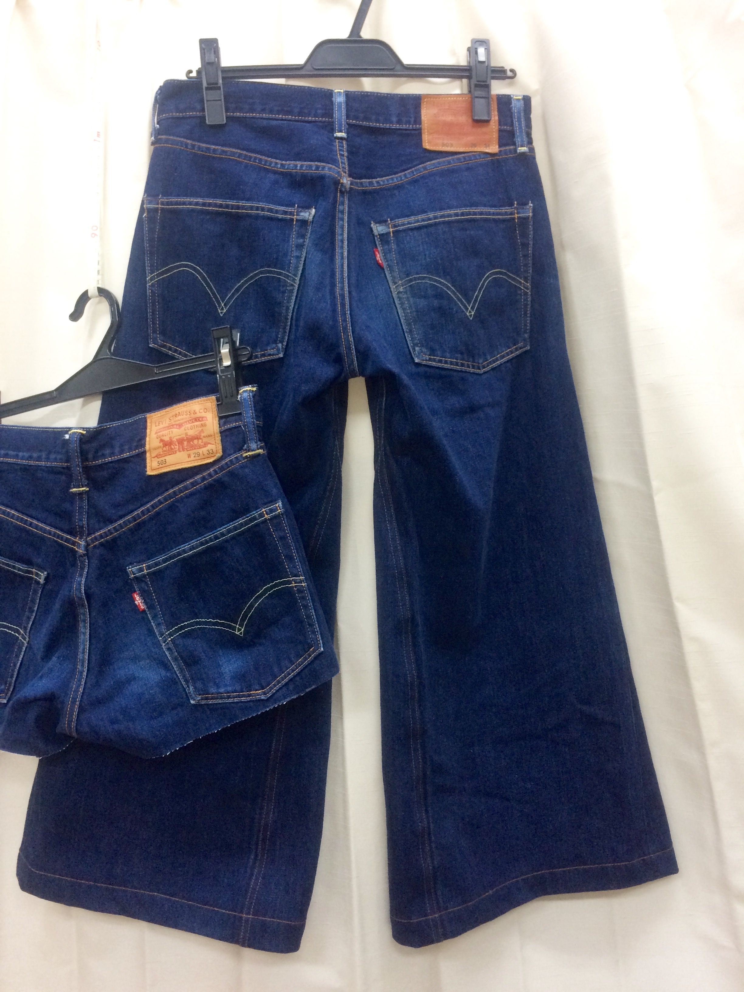 リーバイスのデニムを2本使って、ストレートパンツをワイドパンツにリメイクのご注文です。マチを入れるついでに、元々の体型と合っていなかった内外のラインを微調整して、仕上がりはより立体的になりました。10月20日(土)は東村山店舗お休みとなります。ご予約、お問い合わせは042-306-2442syjuntan@hb.tp1.jp