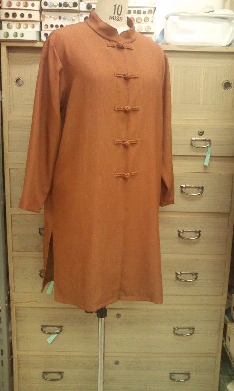 10月は展示が3回です。16日(月)・17日(火)デポー東村山20日(金)・21日(土)デポー八王子みなみ30日(月)・31日(火)デポー町田サンプルは一点物なので、お早めに~。欠品していた、チャイナロングブラウスが仕上がっています。遠目には茶色に見えますが、朱色の千筋が入っているのです。織り自体も縮緬で、光沢があるので、質感も、肌当たりも、とってもなめらかです。10月31日(火)は町田展示会場でご予約対応の為、東村山店舗はお休みです。ご予約、お問い合わせは042-306-2442まで