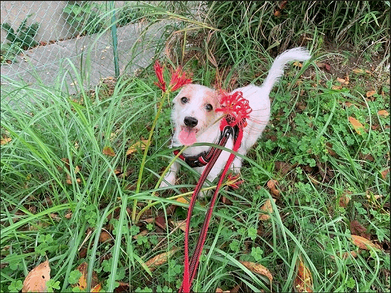 ロージーと同じくらいの背丈の彼岸花…