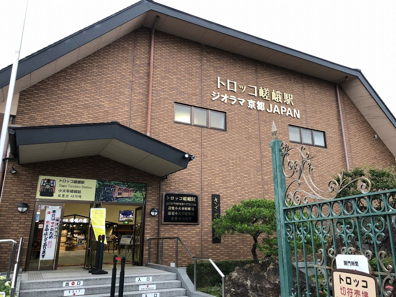 案の定、お客はガラガラでしたね。いつもは観光客で立ち乗りぐらいしかできませんが、今回は余裕でデッキ席も座れました。旧山陰線を走るんですけど、ひー様の学生時代は普通に乗っていた路線です。それが今では観光のための路線なんですから時代は変わりましたね。亀岡についてそのまま折り返しで帰ります。一時停止で保津川の流れを楽しみますが、この日は雨上がりで川の水はは濁っていました。向こうに見える山は愛宕山です駅舎はSLや京都の町?を模したジオラマもありました。ふみふみトロッコ電車より、こちらの方が食いつきよかったです。