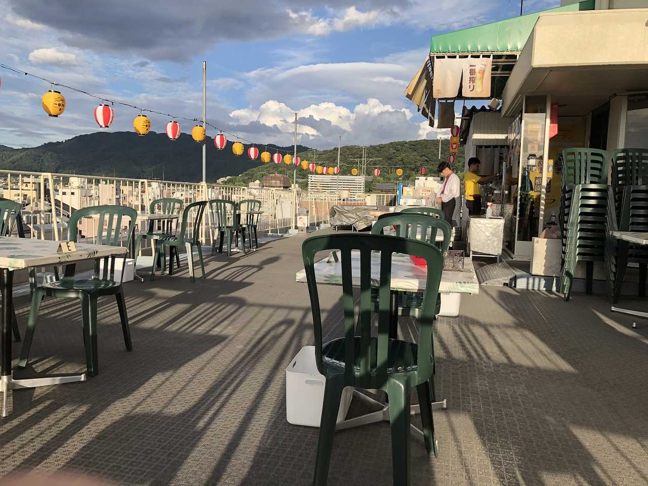 『レストランキエフ ビアガーデン』京都のロシア料理の老舗、キエフさんの夏限定のビアガーデンに行ってきました。ロシア名物。ピロシキ。ウインナー、唐揚げ、ポテト。ビアガーデンの定番です。野菜サラダ・・・・四条大橋方面を見ています。さて!夕方なのにこの猛暑で夜になっても暑いまま!ふみふみ!『もぅ暑いから早く帰りたい!』とだだをこねる始末!ふみふみ初のビアガーデンは、どうやら苦行に思えたらしく、次にビアガーデン行こうと言っても暑いからいや!と嫌がるでしょうね。やはり暑さもほどほどでないとビアガーデンも流行らないのかもね。お店HP