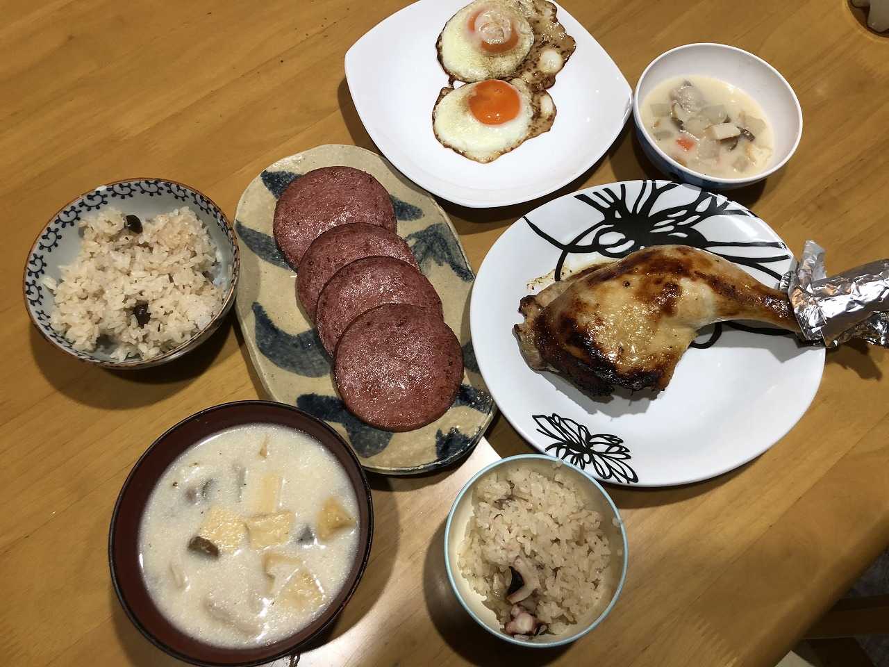 嫁がいつも呑んでばかり居ないで、たまには自分でご飯を作って呑みなさいというもんだから・・・嫁と、ふみふみが出かけていたので、じぶんで晩ご飯作りました。蛸の炊き込みご飯に冷や汁。手羽を買ってきたのでオーブンで焼いてハムに目玉焼きを焼きました。これだけ食べたらビールもあまり飲めないですね。