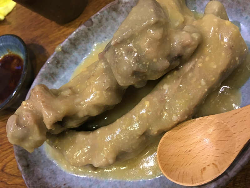 四万十さんで唯一肉のメニュー黒豚のアバラです。その塩麹につけて味噌で煮たものです。