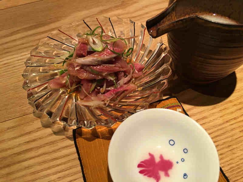 鰯のにんにくタタキです。鰯にニンニクって新鮮ですよね。またこれが熱燗にあうんですよ。