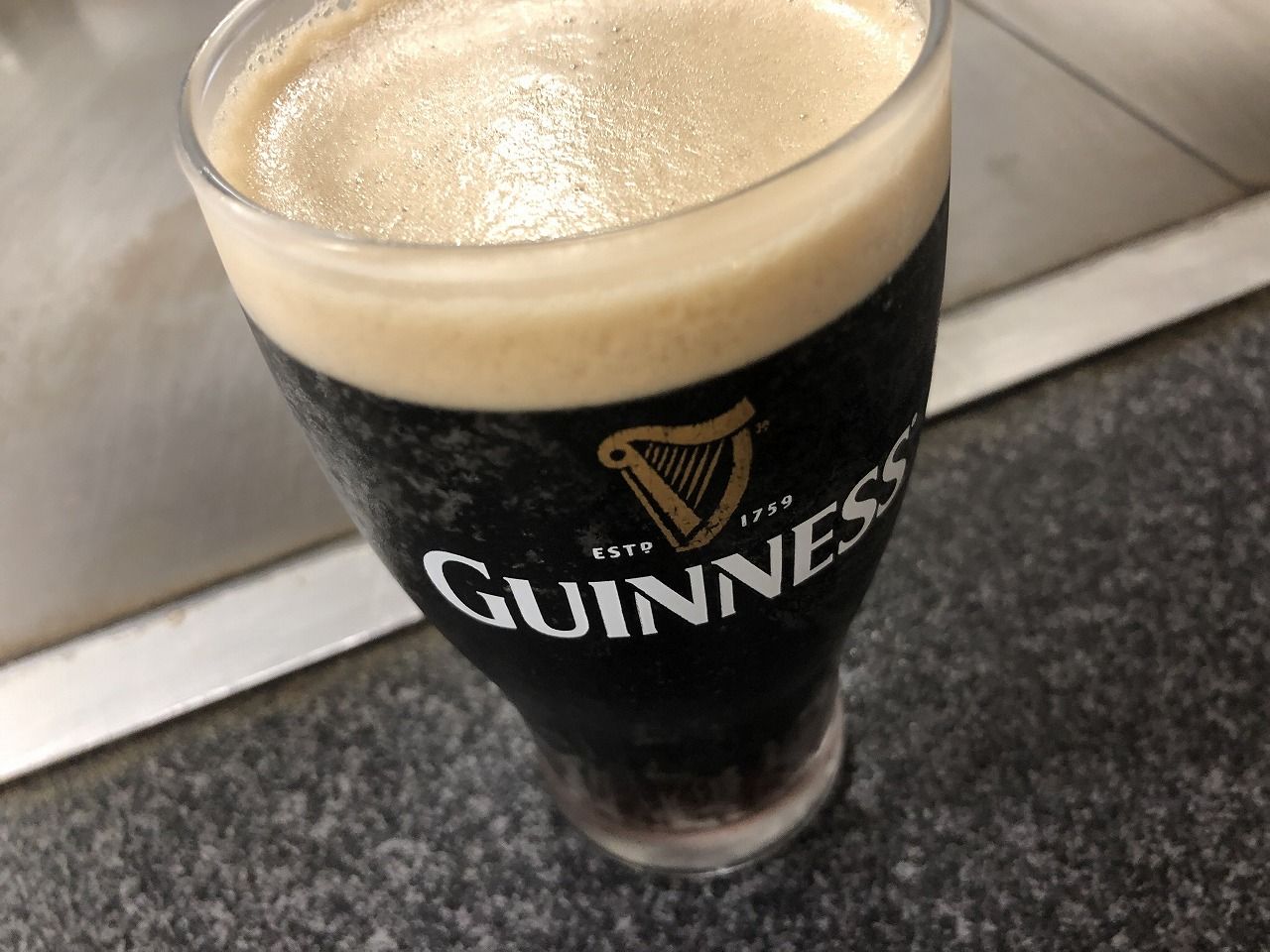 1杯目は贅沢してギネスビール!苦みとクリーミーな泡だちが最高ですね。