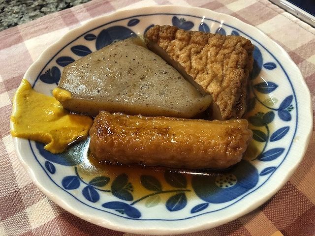 おでん、ゴボ天、コンニャク、厚揚げですね。