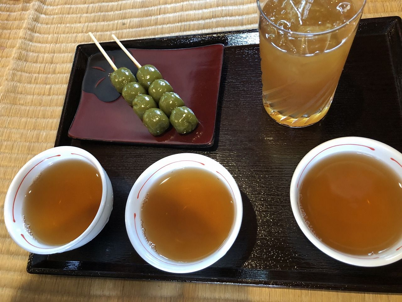 ふみふみ!団子を食べたけど、冷やし飴は飲みませんでした。生姜が苦手なようです。