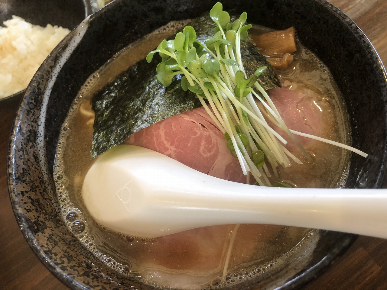 ラーメンが出てきます。スープは典型的な魚介スープ(にぼし)で、繁華街によくあるような有名ラーメン店のように美味しいですけど。何回も言うけどこんなお店他府県!?いや地元でもなかなかわからないんじゃないですかね?