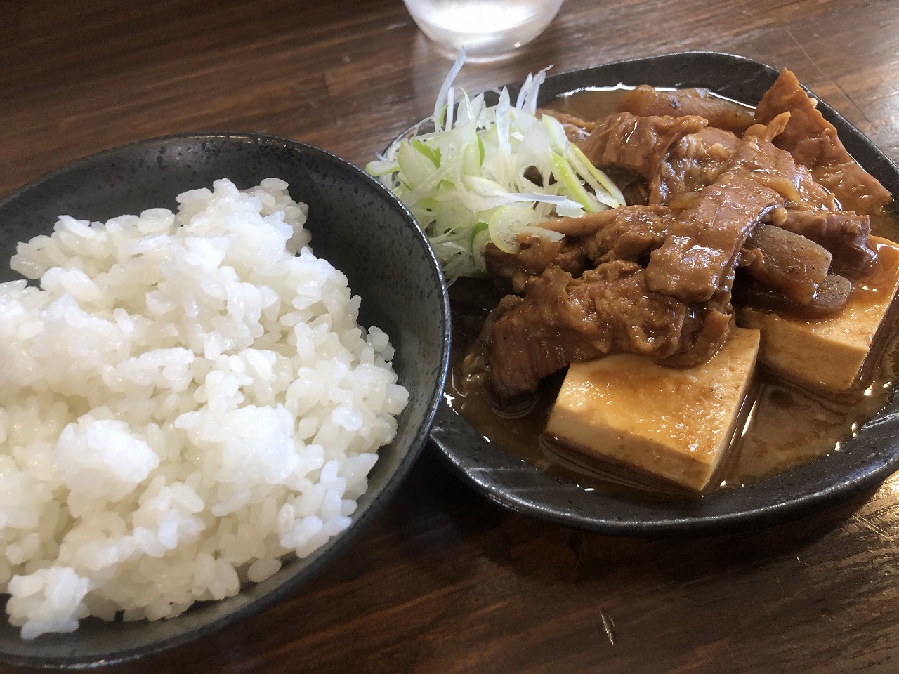 まずはご飯ともつ煮込みが出てきました。これはこれで良いおかずなんだけど・・・・