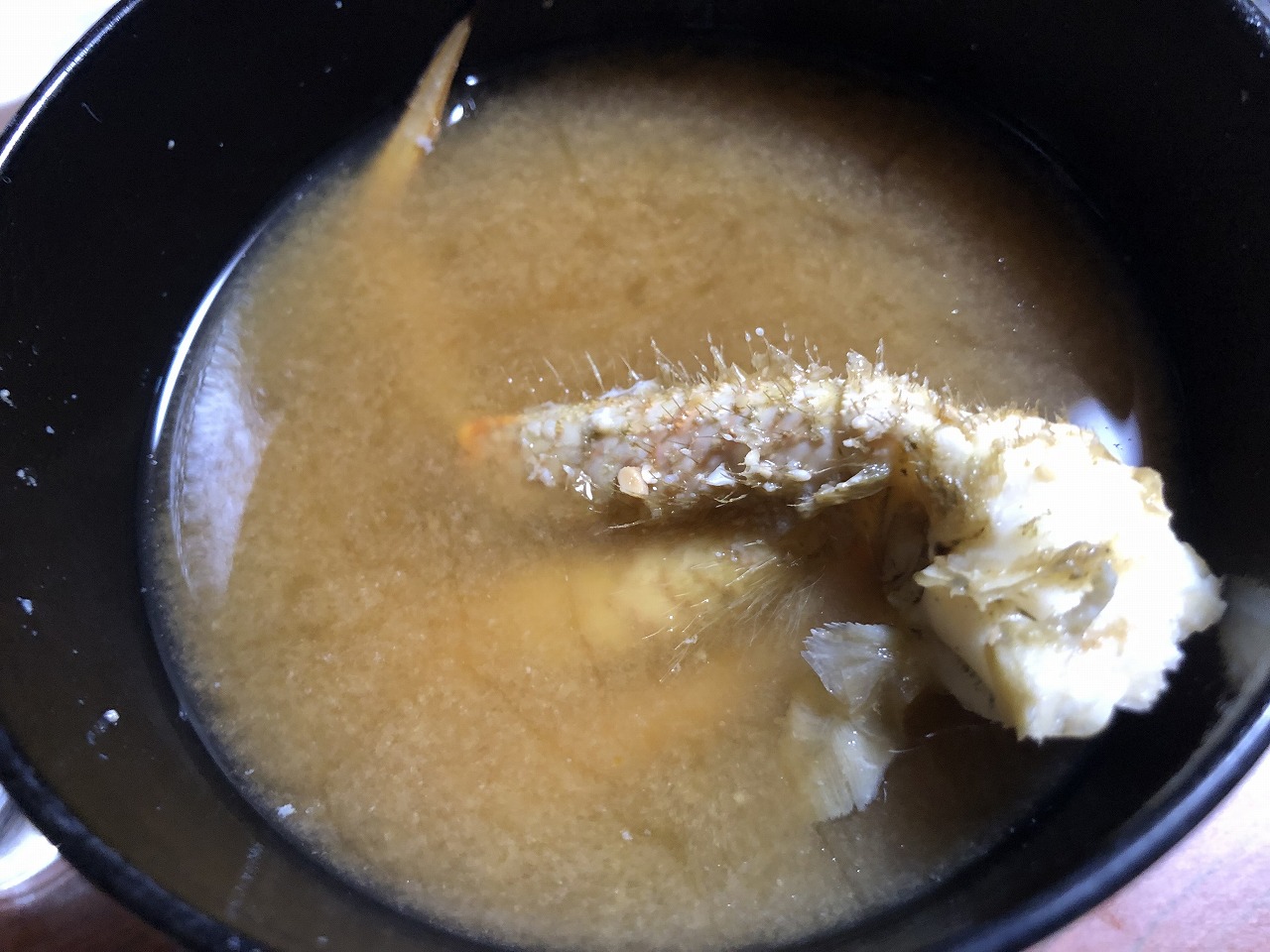 〆は毛ガニのお味噌汁です!蟹は一匹しかいなかったので6等分ですね。