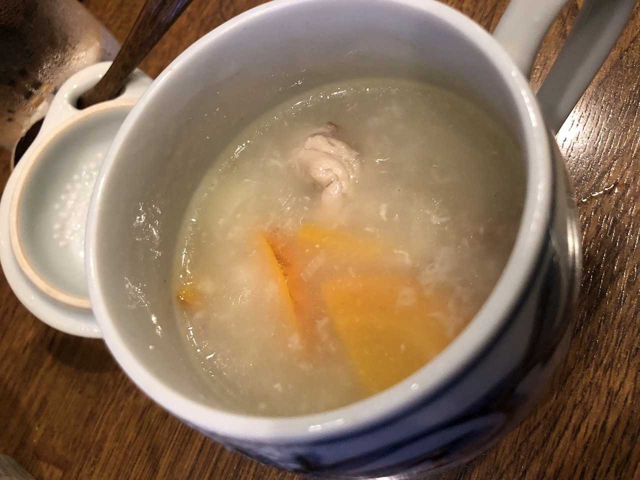 最後に健康スープ!ガーリックオイルをお好みで入れて食べます。