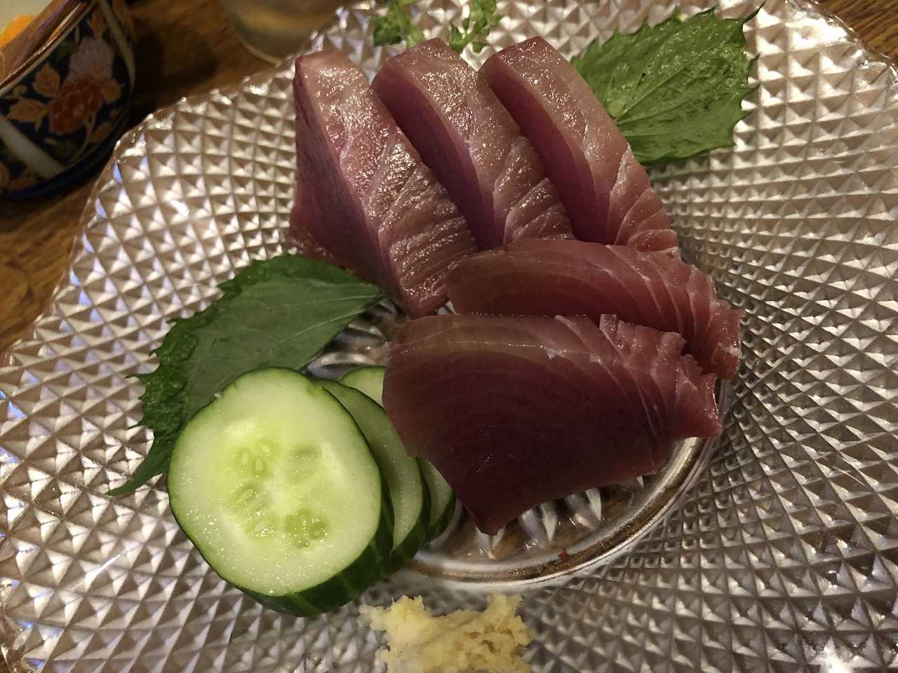 鰹の刺身!鰹を刺身で出す店も最近増えてきあmした。それだけ冷蔵で流通させる技術がアップしたのでしょう!?