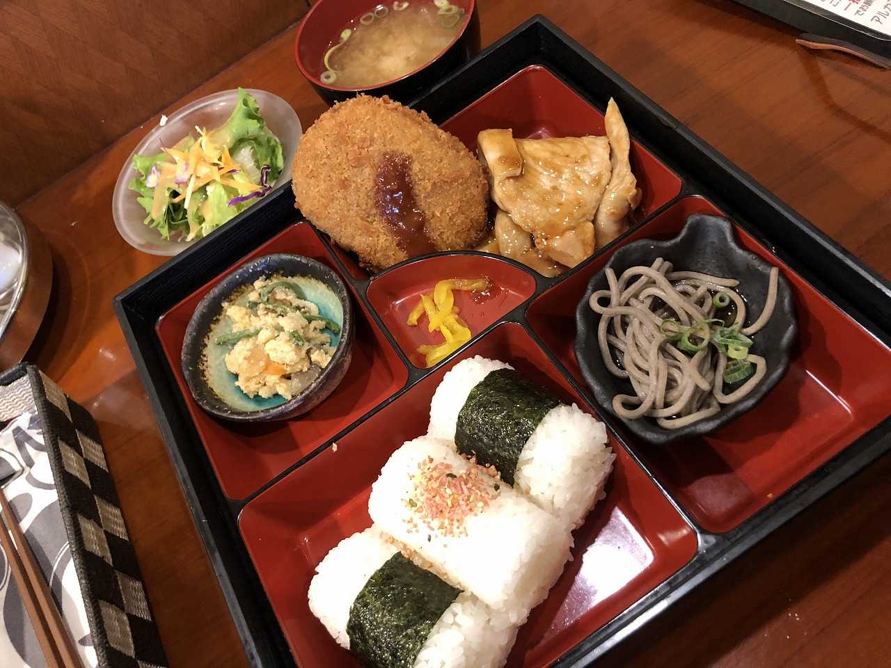 今日の日替わりA定食はコロッケ、豚の生姜焼き、おそばですか。今日も1日頑張りました!