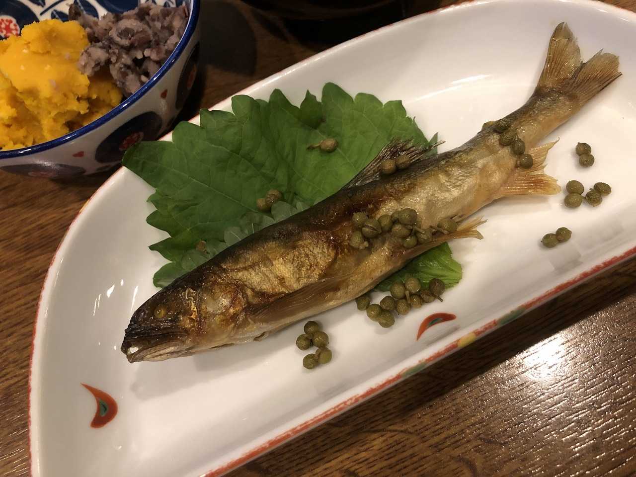 子煮時期の鮎は子持ち鮎ですね。山椒で煮た子持ち鮎です。