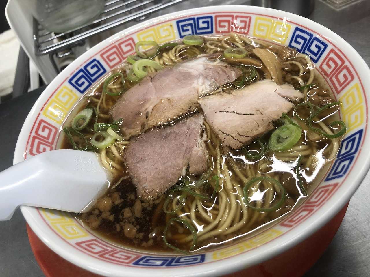 昔ながらの中華そばに、器がチャルメラ模様が懐かしいですね。