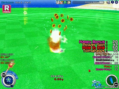 シーズン2ではパワーが21以上でコントと正確度にペナルティーがついていましたが、どうやらシーズン3では22までならペナルティーを受けないでいいみたいです^^なので昨日はシルビア10Hにて、トマの1W時の80%~100%の飛距離調べをしましたwはっきりいってこれは疲れます(;´▽`A``なにせ最低20発はトマ打ちますからねぇ。。でもなんとか調べ終えてほっとしてるとこですあとおまけでBSのHIOでもw
