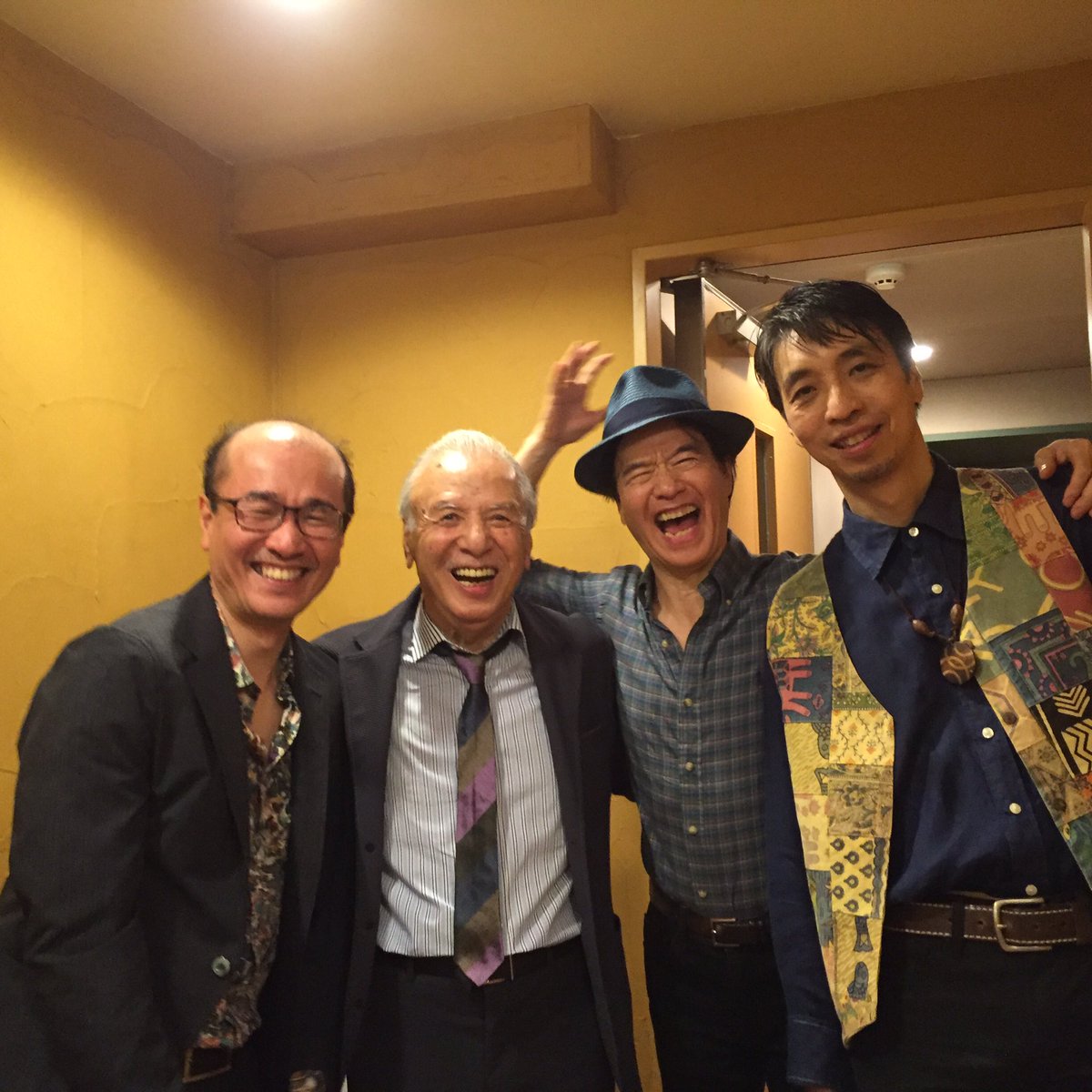 5月の連休に偶然見つけた今日のライブ。見つけた瞬間に予約。しかし、結構すでに予約が多く、今日も席ではないところに陣取る。ほぼ最前列なので、お尻は痛いですが貞夫さんの息遣いも感じられて大満足。超満員の立ち見のお客さんを気遣って、開演も予定より5分早めで中休みも極めて短い。優しい気持ち、嬉しい。 貞夫さんの恩人、Charlie Mariano 満載、Cole PorterやTadd Dameron 、Charlie Parker らのスタンダードたっぷりの素晴らしいライブ。増尾さんの恩人、貞夫さんへの感謝の気持ちがあふれた素晴らしいライブ。今日も生きていて本当に良かったと感じた。神様に感謝!!昨日も日野さんがゲストで来たかったのですが、惜福の気持ちで我慢(笑)。 << 2016 Jun 4th 2nd Day/増尾好秋 2DAYS@新宿ピットイン >>増尾好秋(G)井上陽介(B)奥平真吾(Ds)スペシャルゲスト:渡辺貞夫(Sax)1st.1.SONG OF MAY?2.Kenny Barron's Bootleg Series1986b :If I should lose you3.Charlie Mariano - Plum Island4.MY FOOLISH HEART 5.I concentrate on you - Cole Porter6.Miles Davis - Tadd's Delight / Tadd Dameron 2nd7.Sadao Watanabe - All things you are /Birds of Paradise8.Sadao Watanabe - Tree Taps9.Black Orpheus - 陽介さん大Feature10.Charlie Mariano - Lopin'11.Charlie Mariano - Deep in a Dream12.Charlie Parker - Moose The Mooch13.You Better Go NowEnc.14.花は咲く15. I Thoght About You 〜 Lament?16. ? - 増尾好秋 トリオで << 2016 Jun 5th/ NHK FM Session 2016 - the otherside quartet - >>「C Jam Blues」 (1分49秒)「Dark Light」 (5分26秒)「Two Doors」 (3分47秒)「Jacqueline and Paul」 (5分41秒)「Oikaze」 (5分21秒)「The Lost Art」 (5分55秒)「South Bound」 (6分10秒)「Saga」 (11分18秒)「Tomorrowbeat」 (4分09秒) (ピアノ)古谷淳 (テナー・サックス/ソプラノ・サックス)西口明宏 (ベース)千北祐輔 (ドラムス)服部正嗣<< 2016 Jun 5th Barry Harris Slowboat Trio @ 新宿Someday >>1st set: 1.Fukai Aijo(solo)/Like Someone in Love(trio) 2.All God Chillun Got Rhythm 3.Ruby,My Dear 4.Woody N' You 5.Duke Ellington Medley:Lotus Blossom(Strayhorn)/Duke with Love(Barry Harris)/Prelude to a Kiss(Ellington) 6.A Night in Tunisia 7.I'll Keep Loving You 8.I Want to Be Happy 9.Willow Weep for Me 10.How High the Moon 11.Nascimento2nd set: 12.My Heart Stood Still 13.It Could Happen to You 14.Off Minor/Un Poco Loco 15.A Time for Love 16.I'll Remember April 17.Everything Happens to Me 18.Heart and Soul 19.Ladybird 20.Over the Rainbow 21.Round About Midnight 22.Let's Monk(Barry Harris) 23.Tokyo 3-5-6 24.Nascimento Encore: 25.Somebody Loves Me