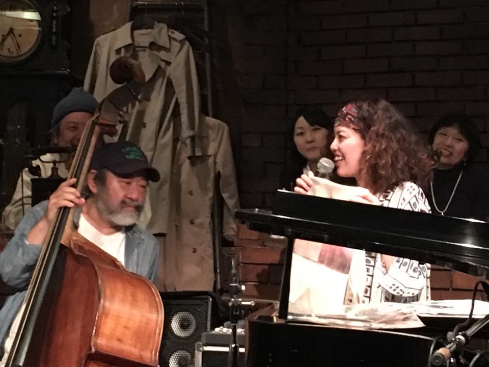 今日は益子麻奈さんのボーカルを聴きに白楽に参上。Keiko Leeさん、ウイリアムス浩子さん、青木カレンさんと続いたボーカル強化週間の締めは麻奈さん。麻奈さんは恐縮されると思うが、熱烈ファンとしてはお3人に伍してイチ押し。今日はCarpenters/Jobimモノが新しい。毎回何が飛び出すか?分からないのが楽しい!企画、工夫を考えるの大変かと思うが良い結果出ている。「常に新しい試み」の気持ちがSo Good!気温の変動で麻奈さんMCはやや鼻声でしたが、ボーカルはバッチリ👌。偶然にも先週SometimeでKeiko Leeさんが弾き語りで歌った「As Time Goes By」が3曲目。Keiko LeeさんがNYのBlue NoteでCamen Macraeの歌うのを聴いて歌手に成ろう決心した曲。今日のお勧めはこの「As Time Goes By」と「I need to be in Love」、「One Note Samba」、「Misty」、「Star Dust」。<< 2017 Apr 26th /益子麻奈トリオ@白楽Blues Ette >>益子麻奈(vo)吉田直樹(pf)広目亮(b)1st1.L.O.V.E.2.My Favorite Things3.As Time Goes By−Keiko LeeさんがNYのBlue NoteでCamen Macraeの歌うのを聴いて歌手に成ろうと決めた曲4.You and the Night and the Music5.How High the Moon6.I need to be in Love−青春の輝き/Carpenters7.One Note Samba2nd8.Blue Moon9.Someday My Prince will come10.Misty11.Satin Doll12.Star Dust13.Night and DayEnc14.Over the Rainbow