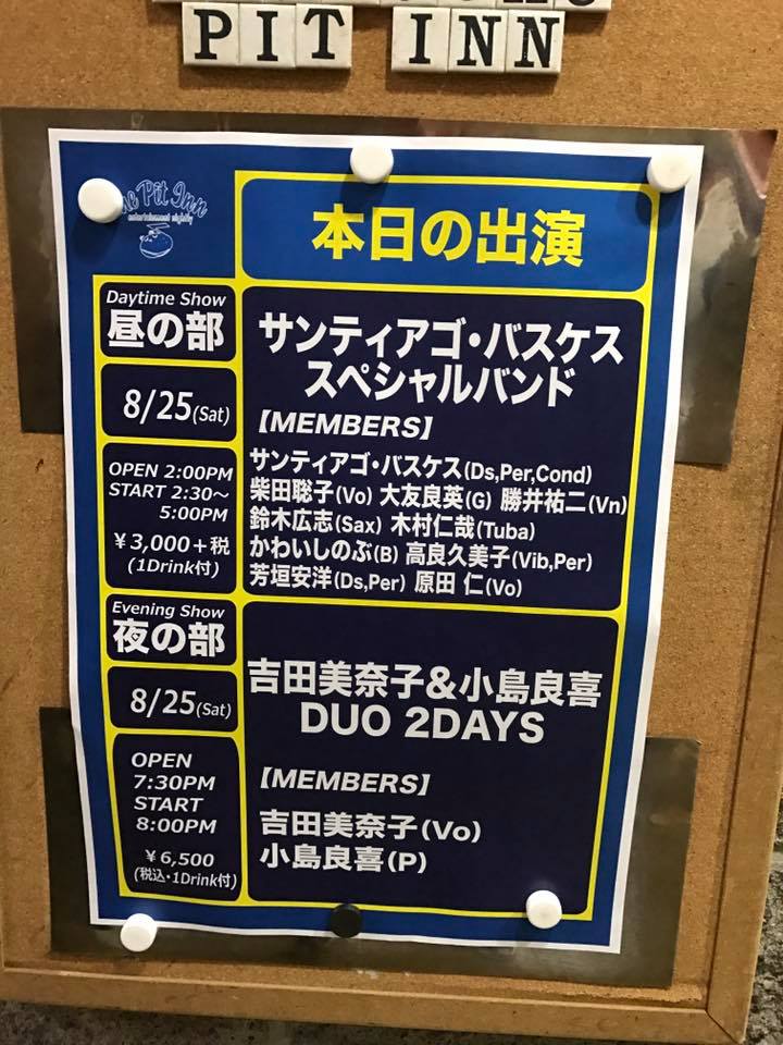 今日は本田竹廣さんのトリビュートバンドを聴きにピットイン参上。金曜日8/17に引き続き、最前列に陣取る。本日はライブレコーディングの収録でNATIVE SUNや竹廣さん作曲がタップリ。NATIVE SUNのヒットナンバーの1、2の「8.Super Safari」、「5.Savanna Hot-Line」で会場は最高潮。本田竹廣さんが亡くなって出棺の際にギターを持った橋本さんとハーモニカの今出さんが奏でた「3.Save Our Soul」。心に迫る音だった。BGMはBud PowellとThe Louge Lizards。終演後は、竹廣さんのアルバム「ジス・イズ・ホンダ」の「You Don't Know What Love Is」が流れる。やはり素晴らしい!<< 2018 Aug 19th 《本田竹廣トリビュートバンド》@新宿ピットイン>>本田珠也(Ds)峰厚介(Ts)守谷美由貴(As) 橋本信二(G) 板橋文夫(P)米木康志(B)1st1.The Way To Brooklyn-浄土2.Second Country-浄土3.Save Our Soul-竹広さん作曲、小室等さん作詞。晩年好んで演奏。4.Wind Surfing-夏にぴったりのNATIVE SUNの曲。2nd5.Savanna Hot-Line-NATIVE SUNの2ndアルバムのタイトル曲6.RIPPLING-80年代のエレクリックからチンさん、日野元彦さんとのアコースティックなピアノ🎹トリオに回帰した際に作ったボッサ。So In Loveを思わせる哀愁の旋律。7.宮古高校校歌8.Super Safari-NATIVE SUN最大のヒット曲。トリビュートバンドでは必ずやるナンバー。Enc9.Hey Jude